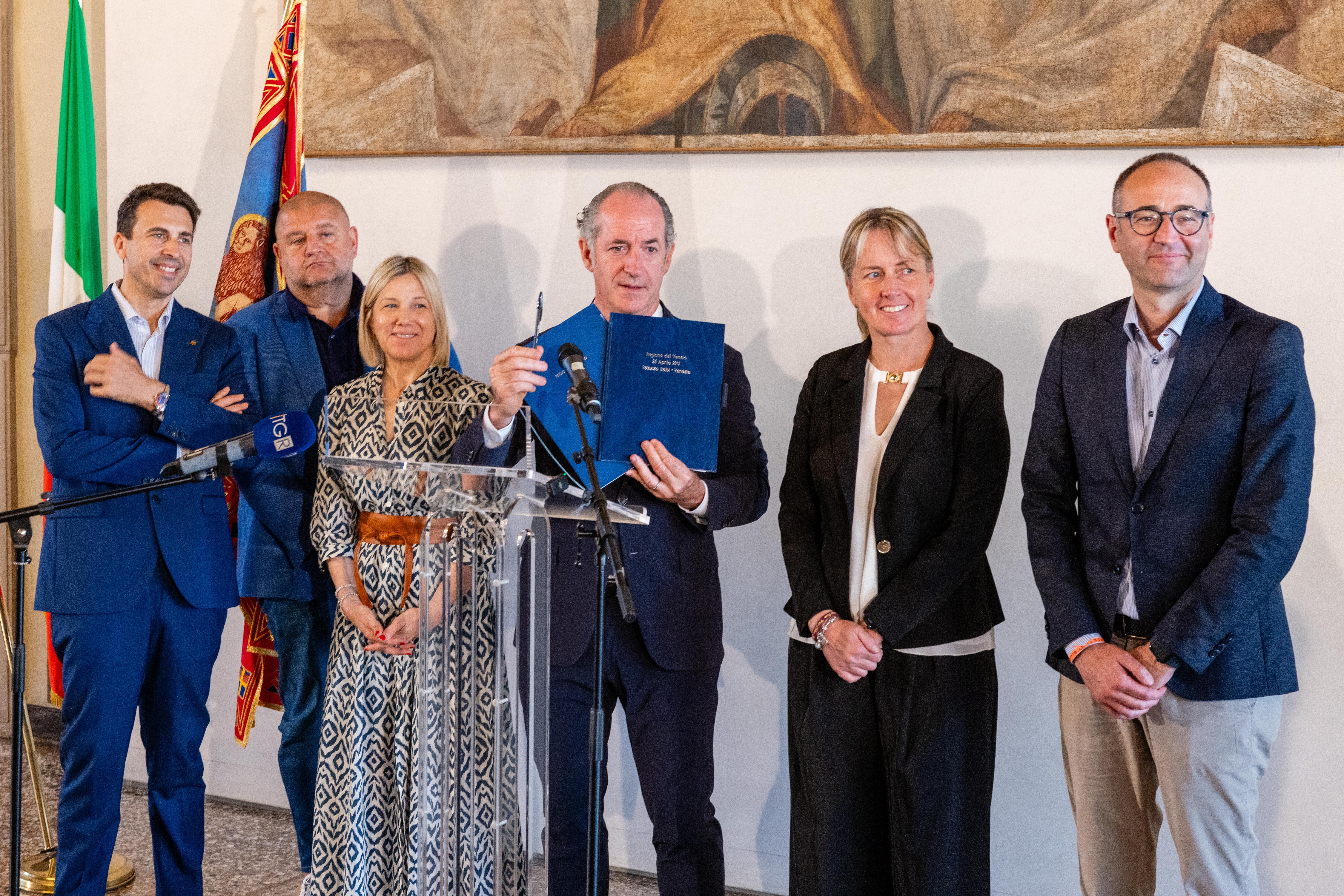 La lettera è stata firmata dal presidente Zaia con la penna che servì ad indire il referendum consultivo del 2017. “Un gesto che anche allora portò bene. Come allora oggi guardiamo al futuro”, ha concluso il Presidente.